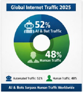 A study by Lunio Research in 2024, before full AI implementation, found that 8.5 percent of paid traffic across all major digital platforms was invalid or non-human. In 2026, an industry report warns that AI has made invalid traffic much harder to detect as advanced bots increasingly mimic human behavior, and another study from the 2025 Imperva Bad Bot Report found that AI-driven bots now generate more than half of global internet traffic, which surpasses human traffic for the first time in history.